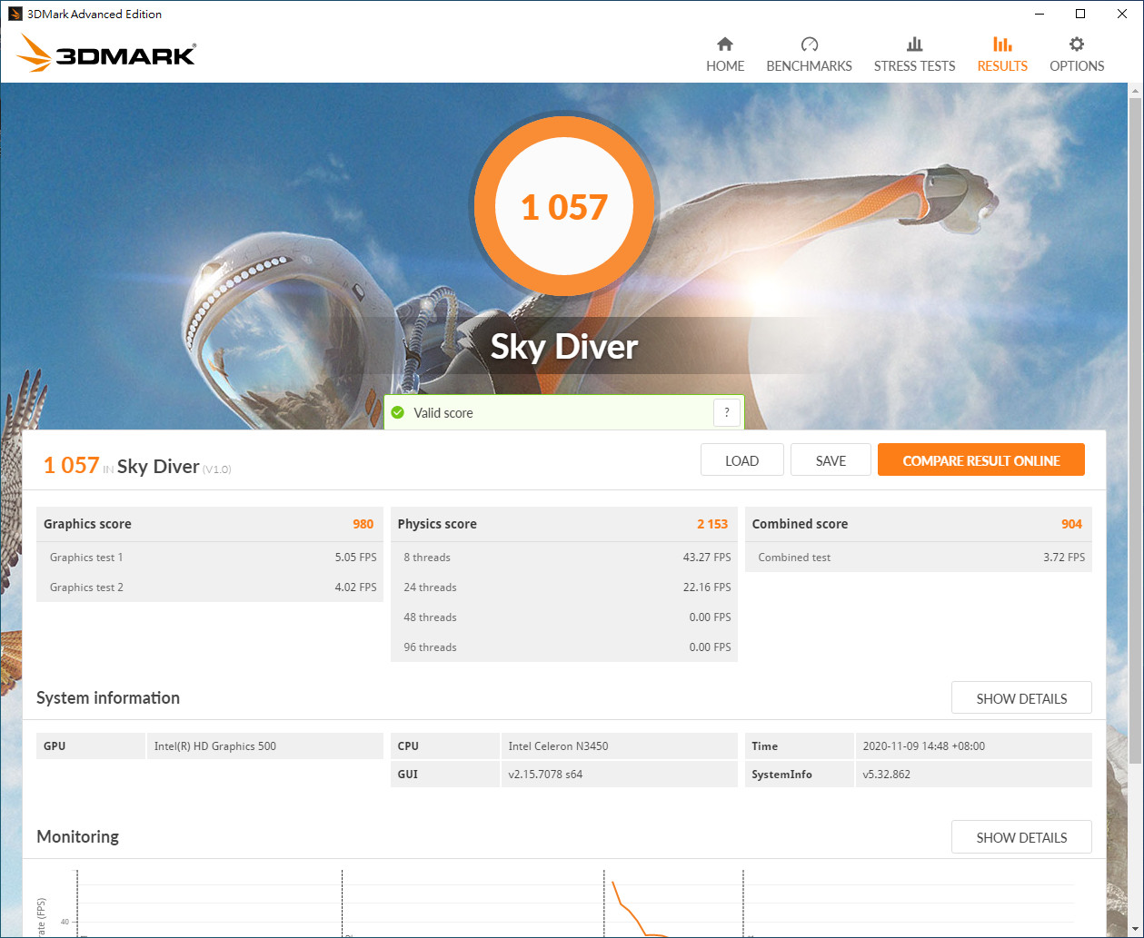 ▲ 3DMark的Sky Diver場景效能跑分 (左: Win10+舊驅動;右: Win11+新驅動)