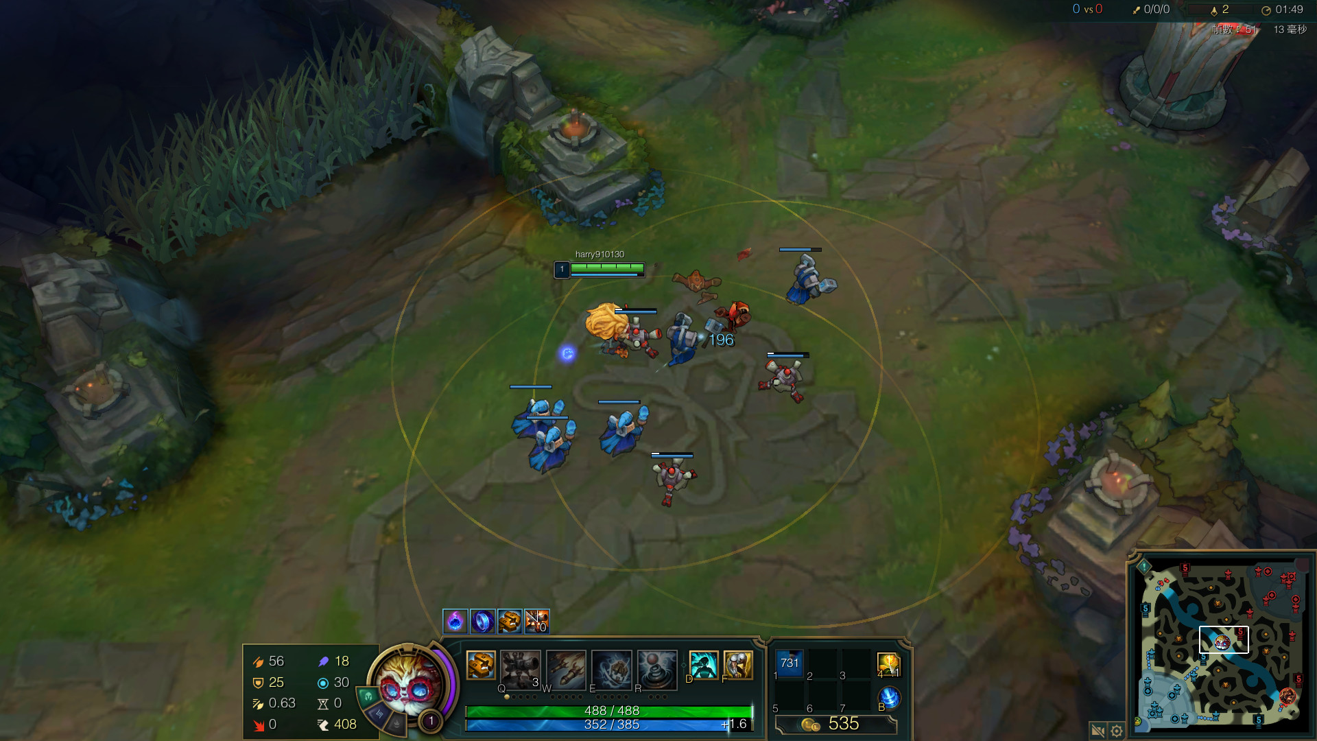 ▲ 在Win 10搭配新的顯示卡驅動程式之下,打LOL時一般戰鬥畫面,也有51fps水準