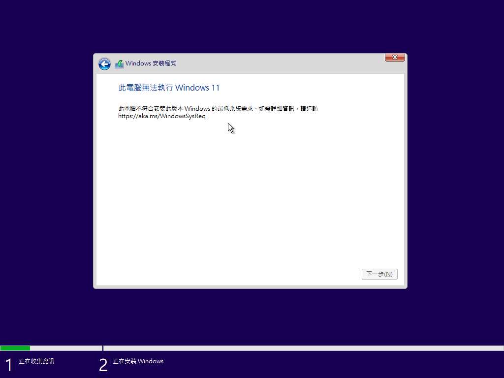 ▲ 不支援TPM 2.0的老電腦,是無法安裝Windows 11的 (安裝時會出現錯誤訊息)