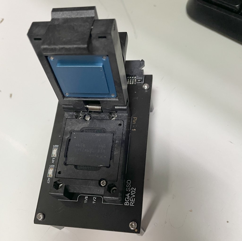 首次接上去之後,可以認到,但由於BGA SSD溫度頗高,使得讀取效果不彰,研判BGA SSD原本在筆電內,就已經受到嚴重的損壞,使得治具一開始認到之後,接下來又讀取錯誤。