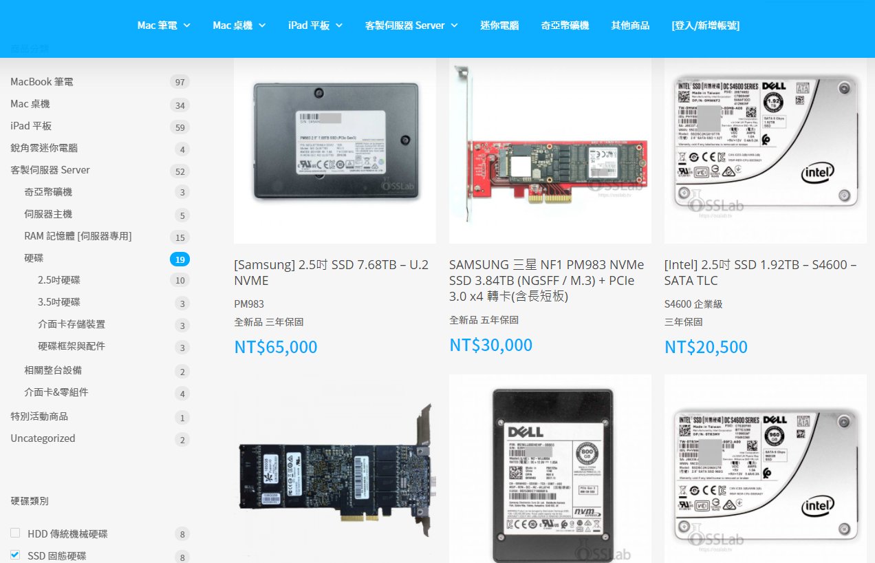 ▲ OSSLab線上商店的伺服器系列賣場,除了伺服器本體,也有販售適用的硬碟、記憶體、介面卡、企業級SSD等配件。