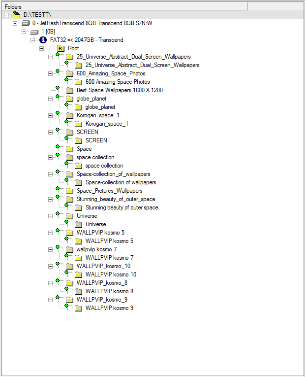我們為了這個測試找來五個完全一樣的創見 JetFlash 370GB。我們是在同一天在同一個地方採購,使用相同檔案系統,主要元件控制器、記憶體顆粒都是一模一樣的。五個完全一樣的快閃磁碟,在每一個磁碟上我們儲存了資料。損壞的照片及圖片都是使用JPG格式。有些程式說他們在回復照片使用了特別的運算方式。大部分在記憶卡上面的也是儲存照片,所以我們的測試對於入門及專業的攝影師會頗有幫助。