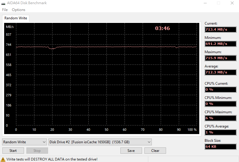 Crystaldiskmark測試上確實比較接近到官方所宣傳的數據,在AIDA64 Disk Benchmark的延遲測試上也是看出了極低的延遲(以至於無法測出?),優異的寫入IOPS及低延遲Fusion ioMemory ioFX強大特點,還有PBW級別的壽命,ioFX實為一款面相伺服器及工作站的強勁產品。