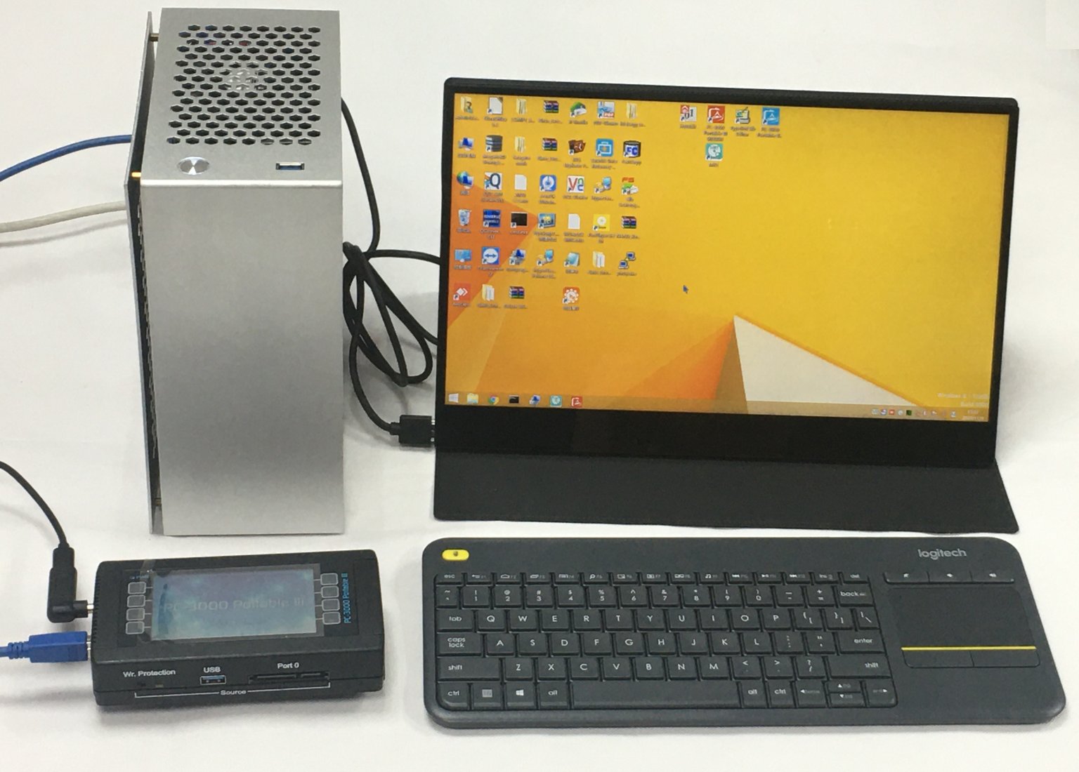 ▲ OSSLab行動機台,包括:一台小主機(已內接專業硬碟救援卡)、一台15吋行動螢幕 (至於鍵鼠部份若客戶幫忙提供,則可帶可不帶)
