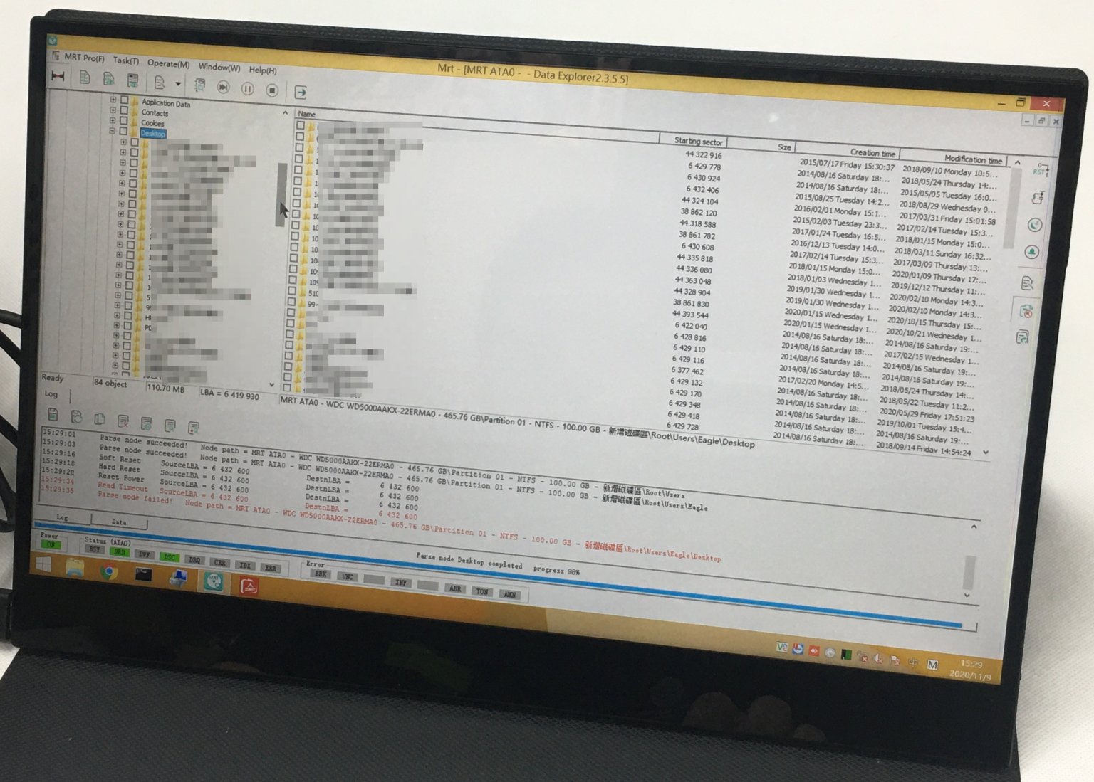 ▲ 電腦已裝有MRT專業硬碟救援卡,只要接上待救援的硬碟(左下角),並執行對應的救援工具,即可開始進行分析動作
