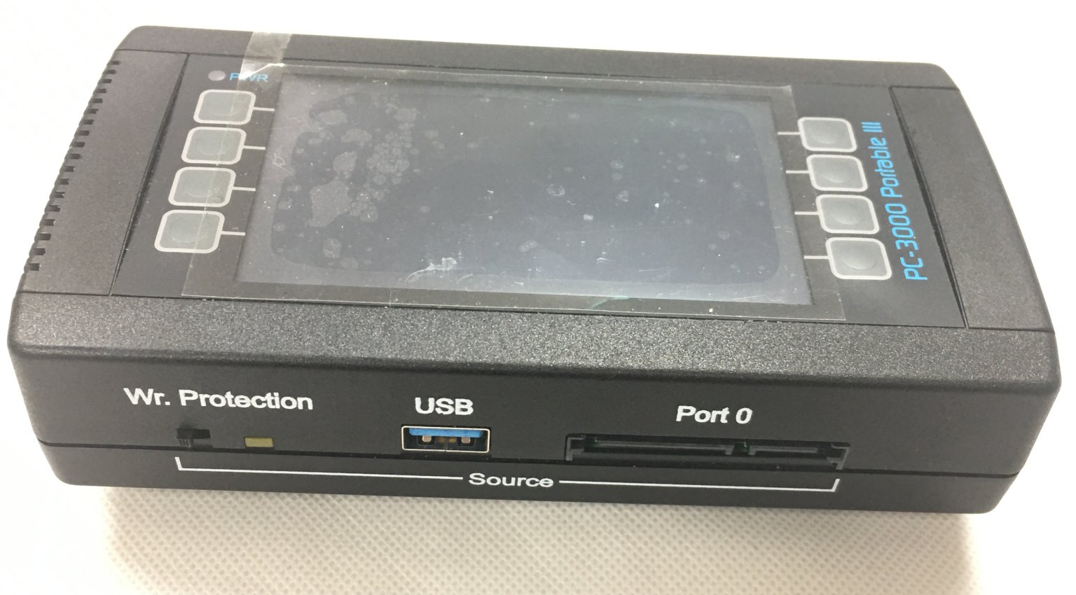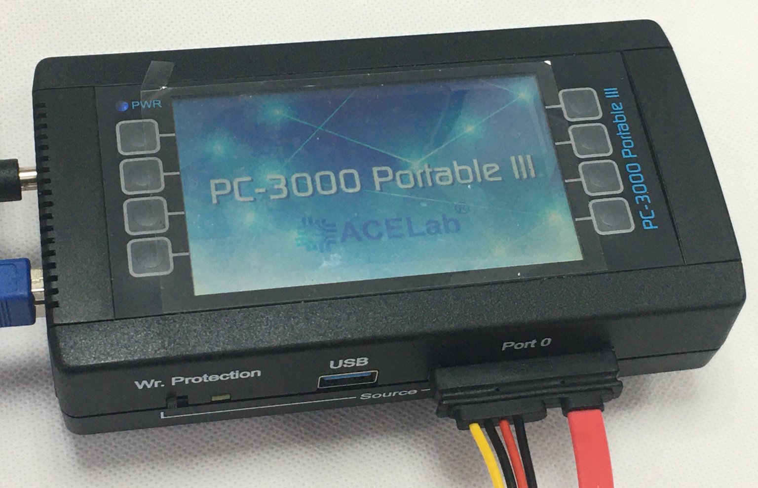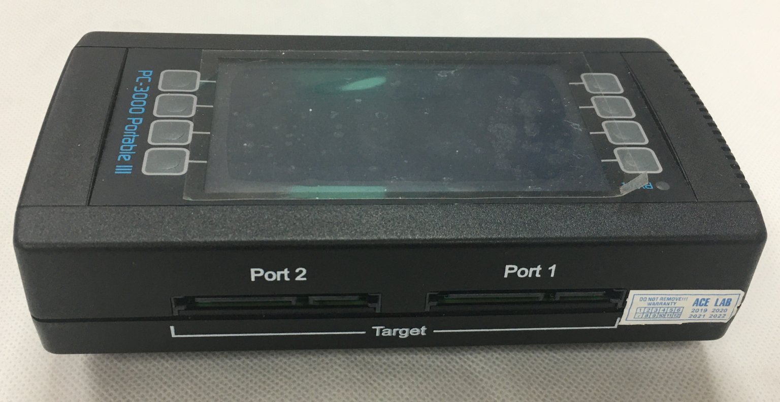 ▲ 通常OSSLab工程師也還會攜帶這款PC-3000 Portable III的硬碟救援工具,有更多功能 (這台軟硬體費用逾NT$40萬!),此機器重量約為350g,體積為153mm x 82mm x 40mm