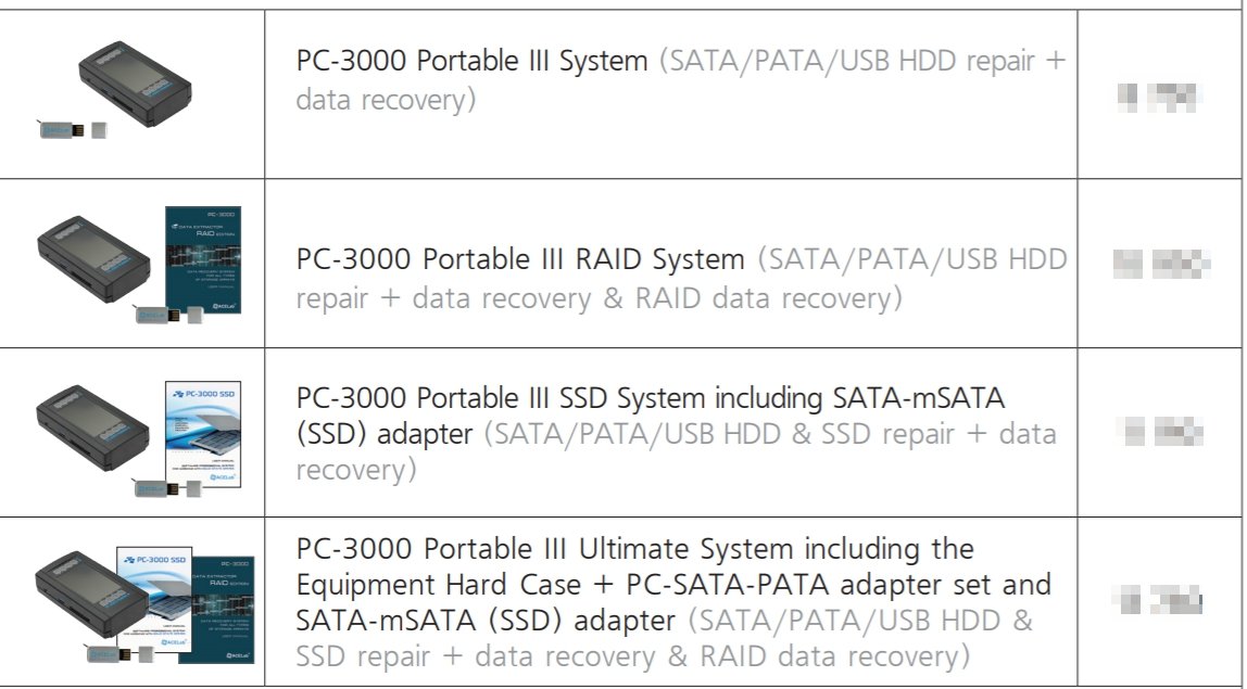 ▲ 這是PC-3000原廠的產品等級,OSSLab的配備是第3級: PC-3000 Portable III SSD System含SATA-mSATA轉換卡