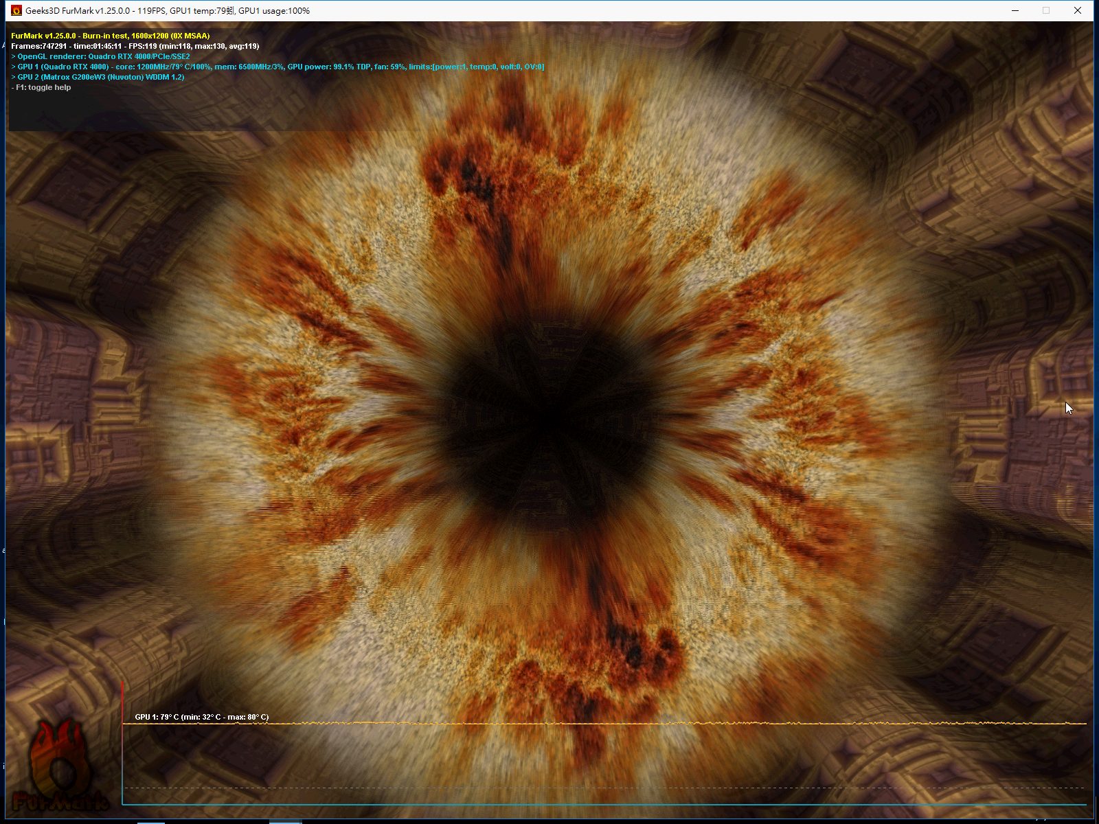 ▲Windows 10下,可透過FurMark來對Quadro RTX 4000進行燒機測試,最高溫度80度C,表示長時間運作下都能保持散熱順暢,並穩定運作!