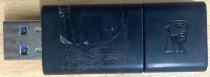 Kingston 32GB USB 電腦讀的到硬碟,但顯示為未裝載,有Bitlouck鎖。 檢測為Flash控制器損壞,導致裝置無法正常讀取。 跟同型號隨身碟比,本隨身碟在主控部分溫度偏高,但並不影響功能,取下FLASH晶片,更換電路進行dump,因有Bitlouck,dump完後解鎖Bitlouck,再以電腦進行複雜運算還原,完成後將資料導出並驗證。 PCBA正面 主控 最終:成功。
