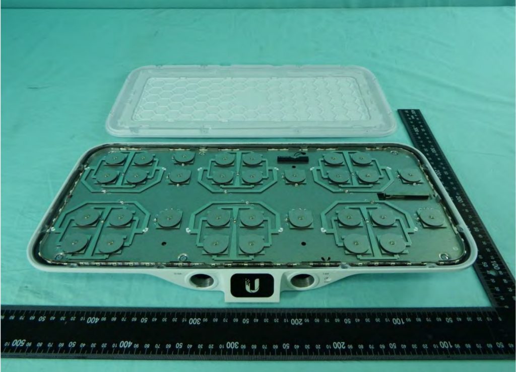 XG BaseStation體積有點大,尺吋19“×9”(幾乎50×25厘米)重量3.2KG ,內有3個 4×4 MIMO 5Ghz 無線電射頻,所有這些頻段都隔離在不同頻段(低,中,高) 。有一個可變的波束/增益定向天線